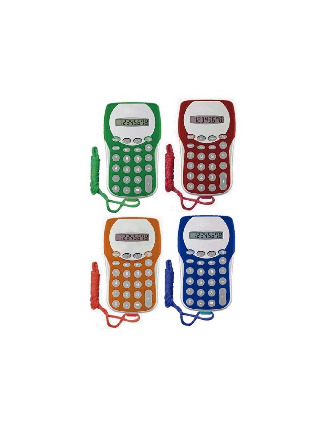 Calculadora colgante Calculadora de plástico a pilas, con sujetador de pita de color. Colores: Rojo, Naranja, Verde, Azul, Negro, Gris. Calculadora colgante Promociones Medidas: 7.5x 12.5 cm (Aprox.