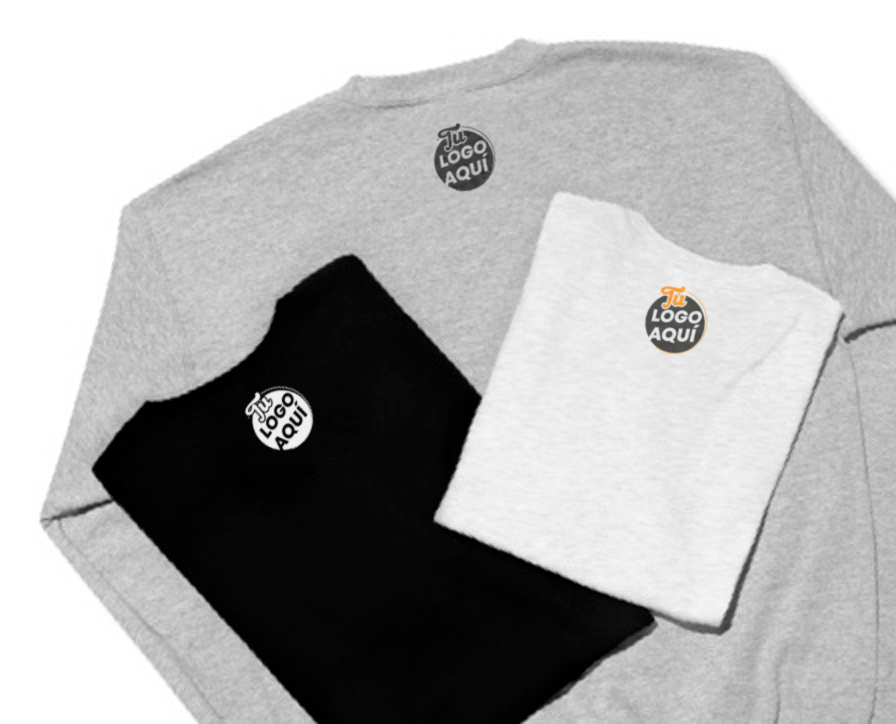 Demuestra quién eres y pon el nombre de tu marca o tu eslogan en las mangas de nuestras camisetas de manga larga o sudaderas de impresión bajo demanda.