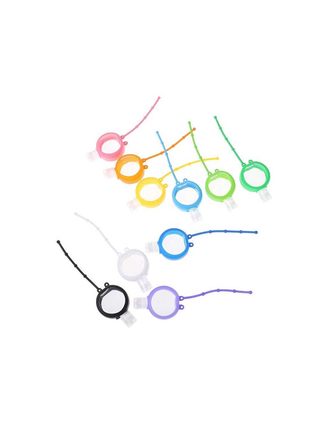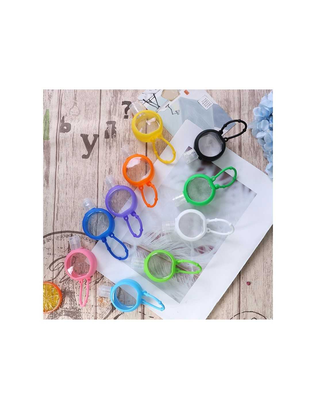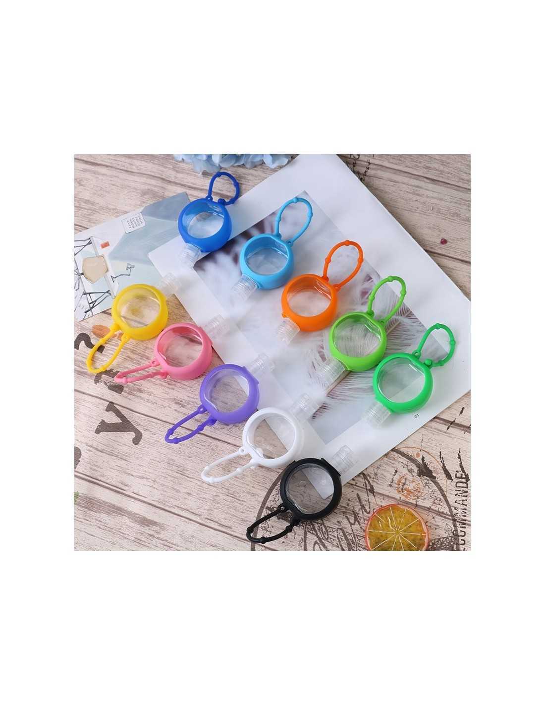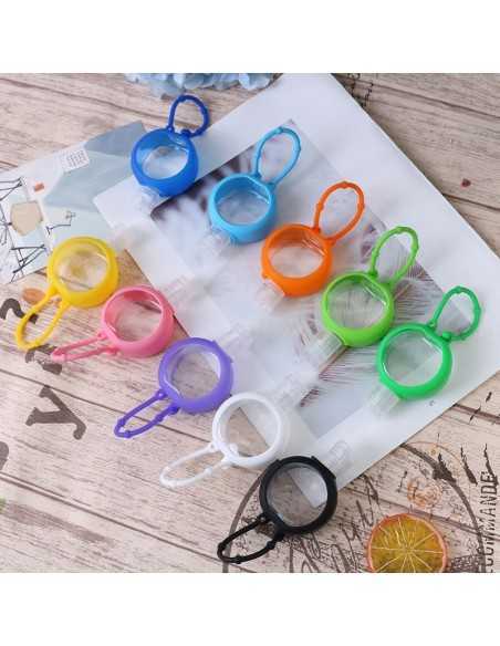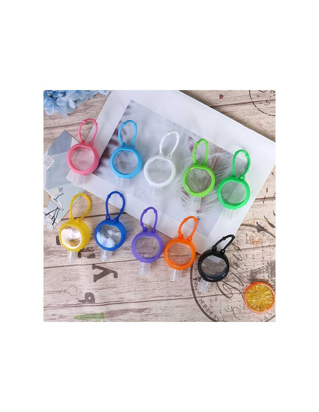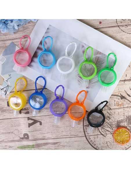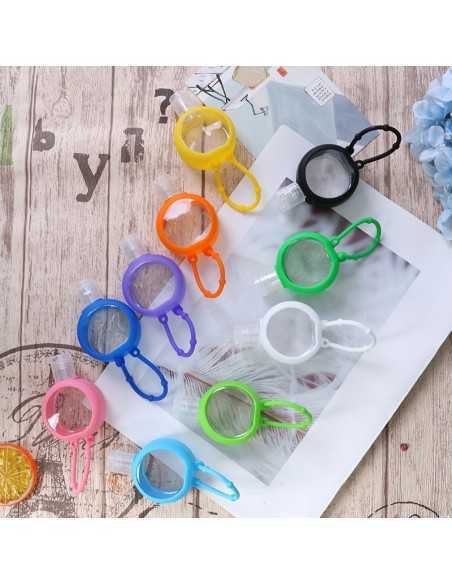 Frasco Circular Gel Antibacterial con sujetador de silicona para cartera, Envase vacio para gel antibacterial de manos, frasco redondo plastico lleno de gel funda silicona colores, Envase portatil gel de 30ml para mochila niños.