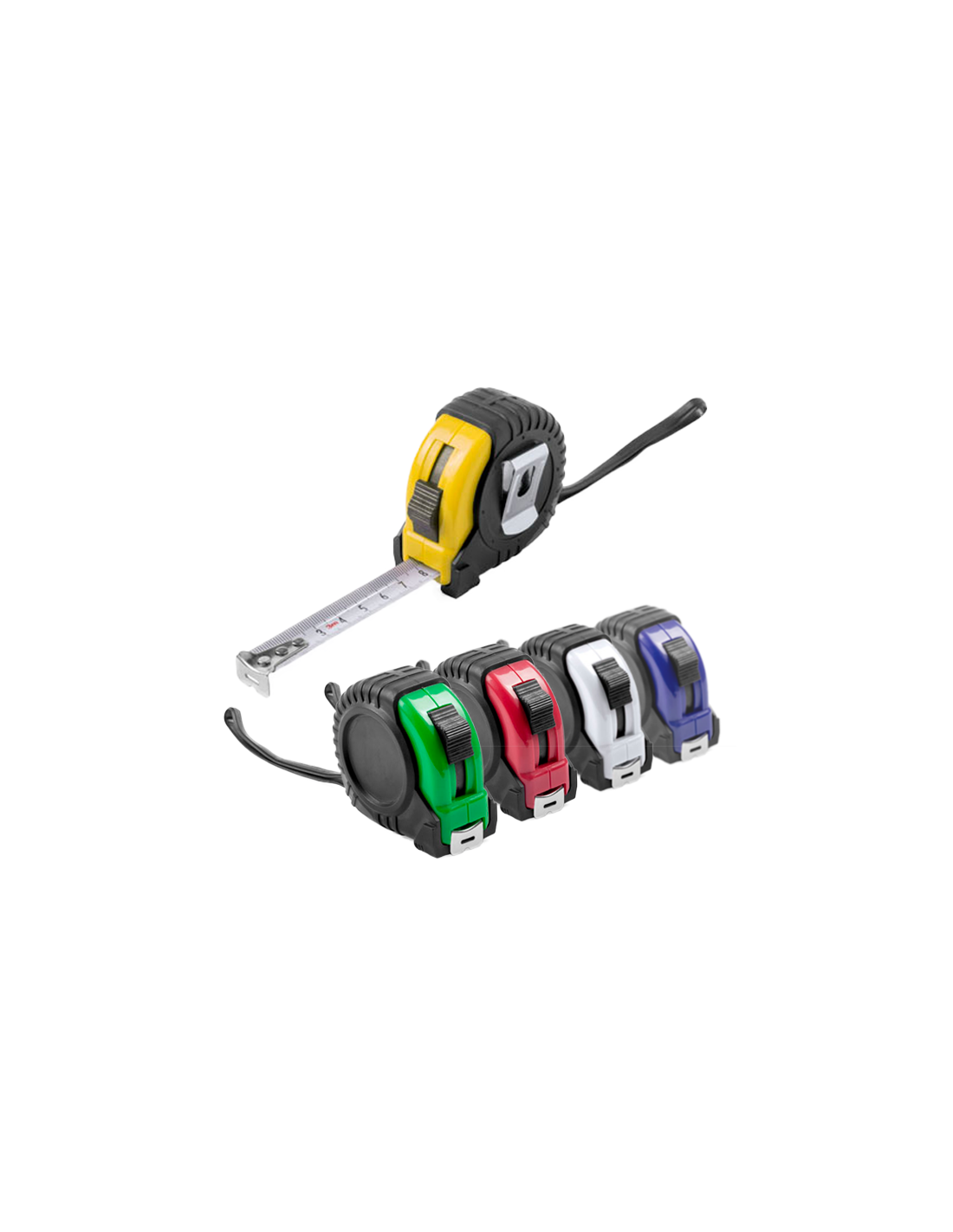 Flexómetro de 3 metros con cuchilla metálica y mecanismo de bloqueo. Con cuerpo de suave acabado en variados colores, recubierto con funda protectora de resistente goma, clip metálico para cinturón y cinta de transporte. Con troquelado especial para marcaje en doming/gota de resina y presentado en caja individual.