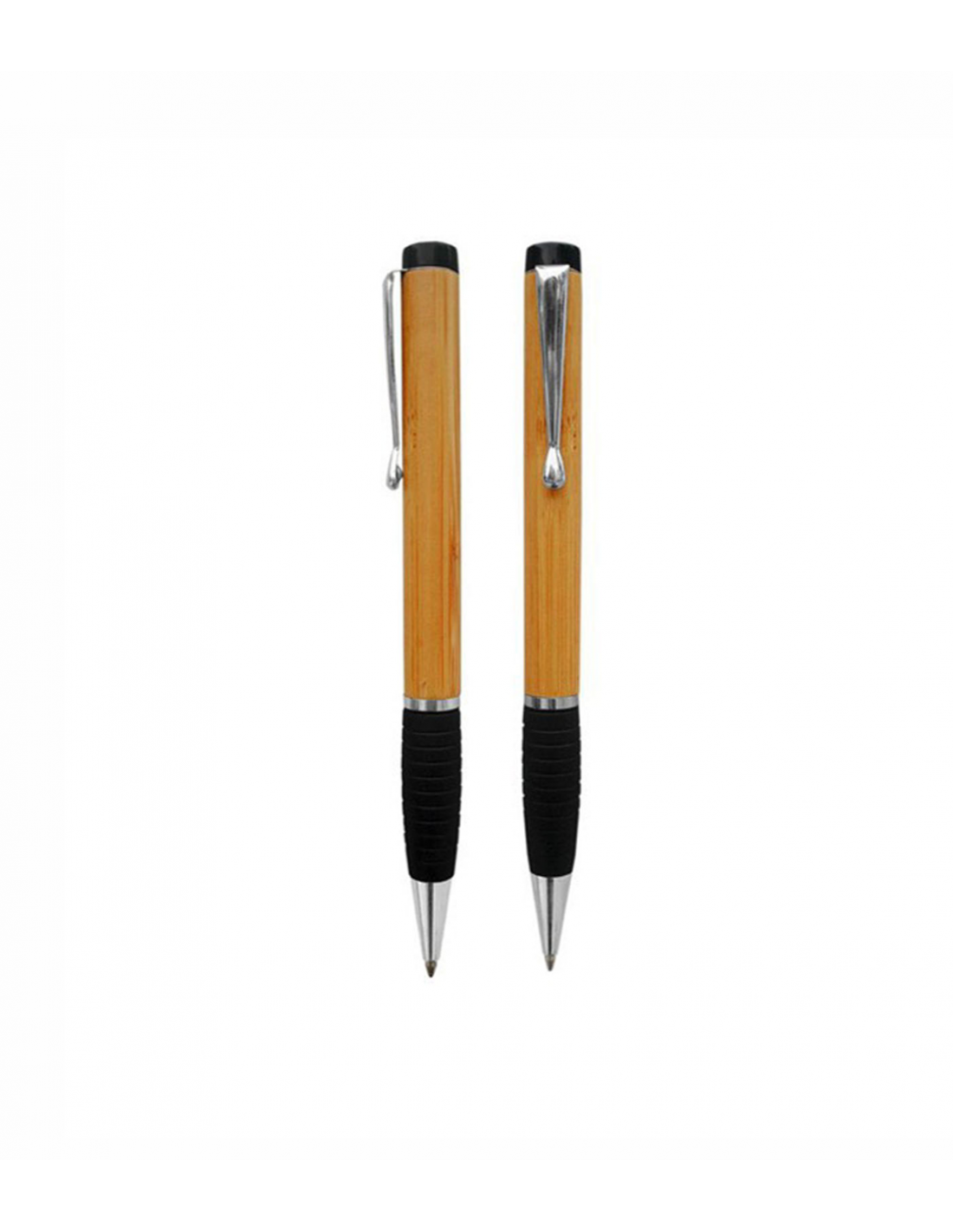 Lapicero Bamboo de sistema giratorio, con goma antideslizante en la punta de color negro. Boligrafo Madera Publicitarios con diseño personalizado