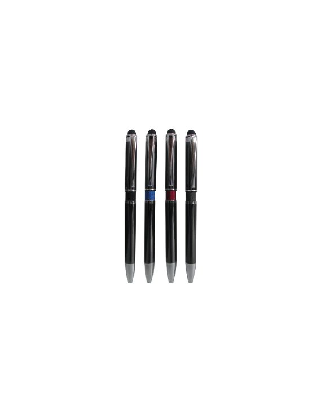 Lapiceros Metalico de sistema retractil, con punta touch en la parte superior para pantallas táctiles. (Tablets, celulares, etc). Lapicero Touch Publicitario con Colores: Cuerpo color Gun, con anillo al centro color azul, rojo, negro, g