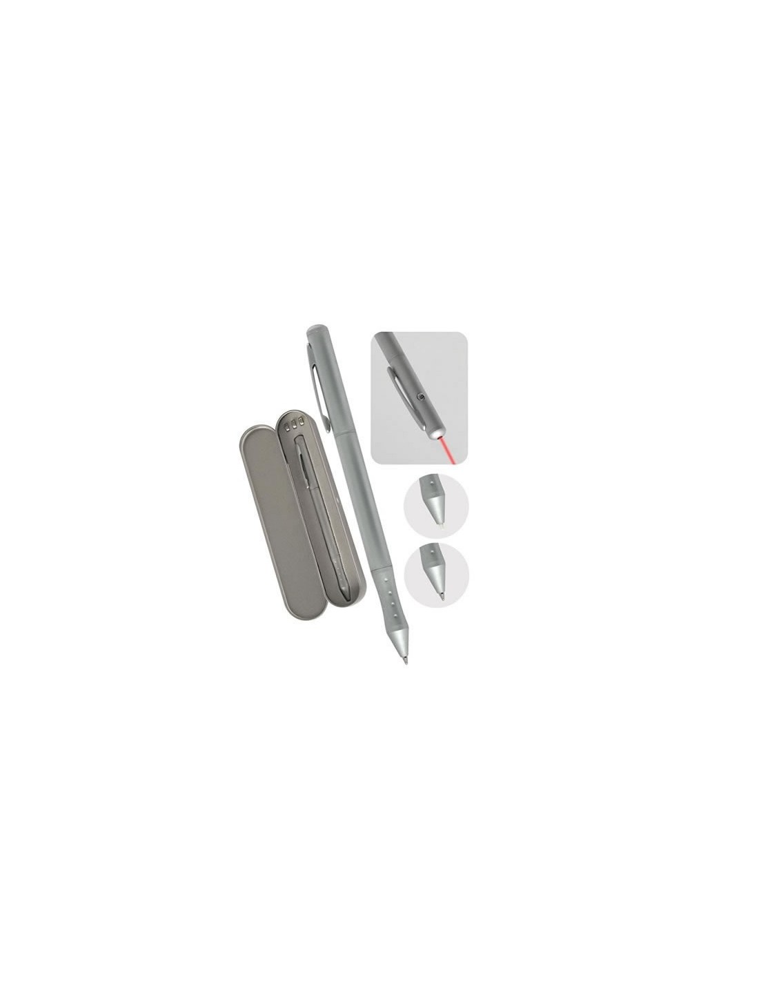 Lapicero metalico de sistema giratorio, con 3 funciones, viene con estuche de metal y 3 pilas de repuesto. Lapicero Laser Publicitarios Multifunciones