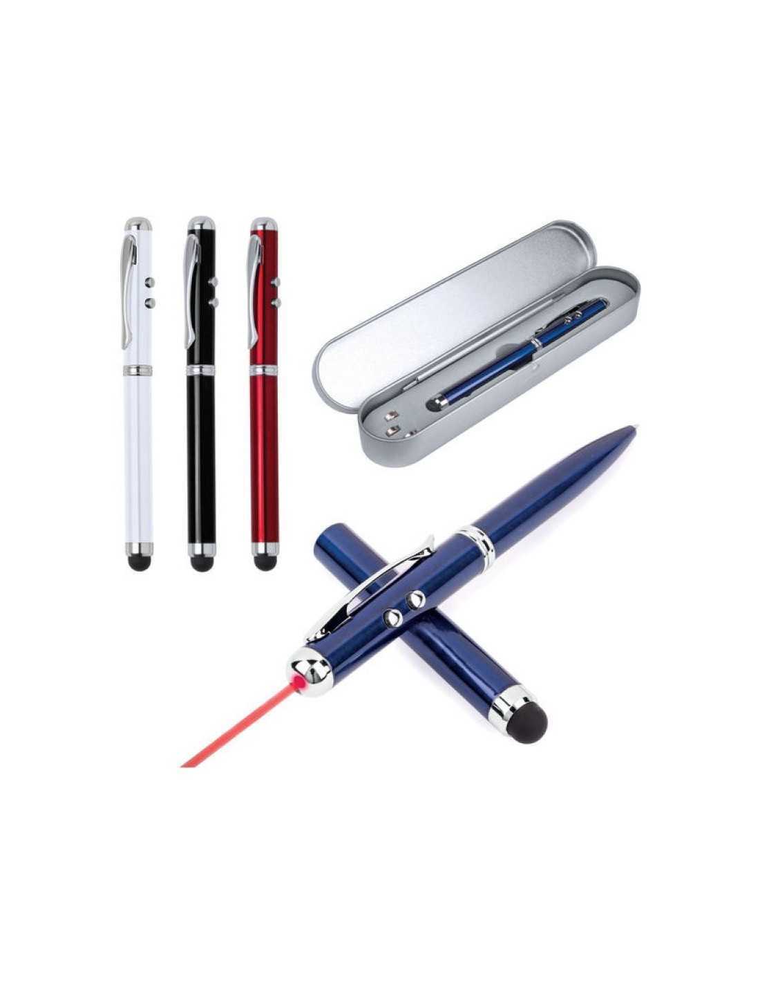 Lapicero metálico, de cuatro funciones, viene con estuche de metal y 3 pilas de repuesto. Lapicero Touch Metal personalizado con diseñor de tu Marc