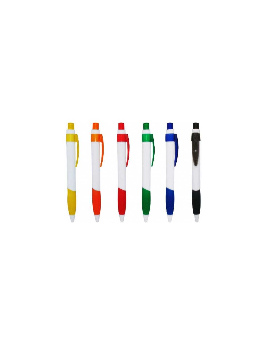 Lapicero plastico rectractil cuerpo blanco y Base Antideslizante en la base y clip de color traslucido Azul, rojo, verde, anaranjado, amarillo y negro, Lapicero Base Antideslizante con tinta azul, Lapicero Base Antideslizante Personalizado corporativo impreso en serigrafia uv tampografia.