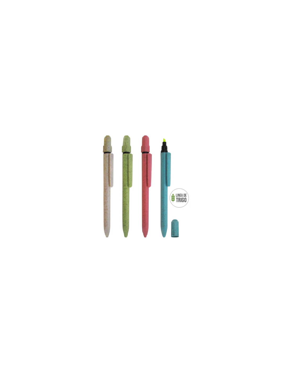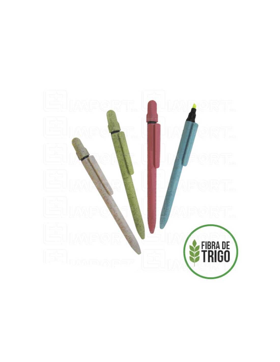 Lapicero pla¡stico Fibra de Trigo, cuerpo de color con resaltador en la parte superior. Lapicero Fibra Trigo Resaltador promocionales para publicidad de tus eventos