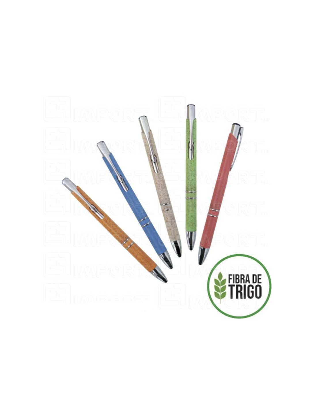 Lapicero pla¡stico retra¡ctil Fibra de Trigo de cuerpo de color; punta, anillos centrales y clip de color plateado brillante. Lapicero Fibra Trigo Ecologico Colores: Azul, rojo, verde limon, natural y anaranja