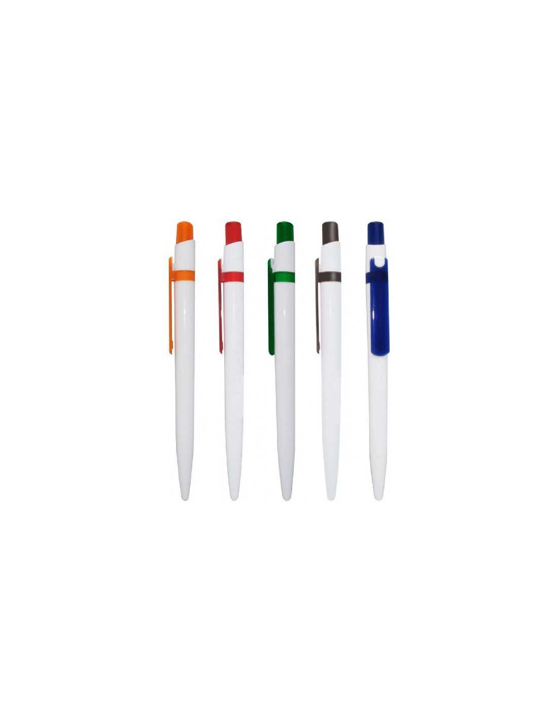 Lapicero Plastico retractil con Clip de color traslucido, cuerpo blanco, Lapicero Plastico Clip con tinta azul, colores variados, Lapicero Plastico Economico Personalizdo logo impreso en serigrafia uv tampografia.