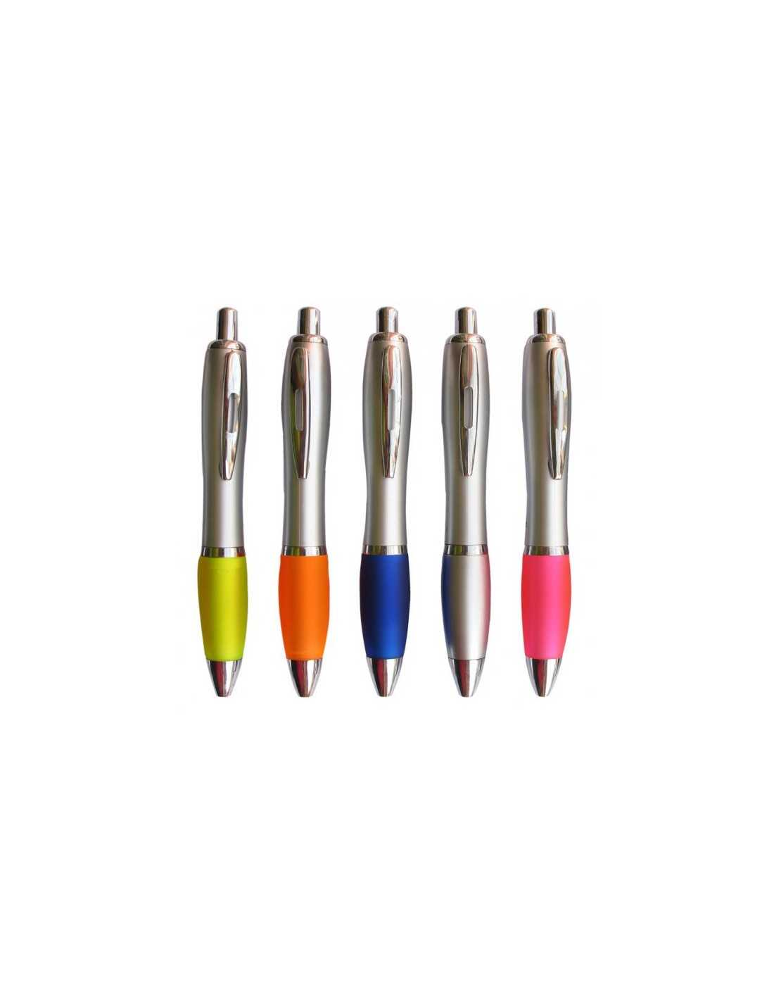 Lapicero Plastico retractil de color Plateado con goma antideslizante de color traslucido, Lapicero Plastico Plateado con tinta azul, colores variados, Lapicero Plastico Plateado Personalizado logo de tu empresa impreso en serigrafia uv tampografia.