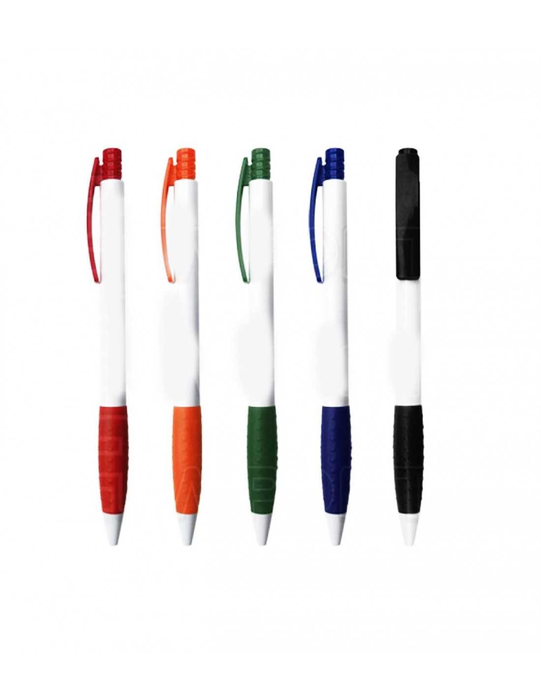Lapicero plástico retráctil, con con goma antideslizante en la base y clip de color sólido. Lapicero Publicitario Personalizado con tu marca para campañas publicitarias polit