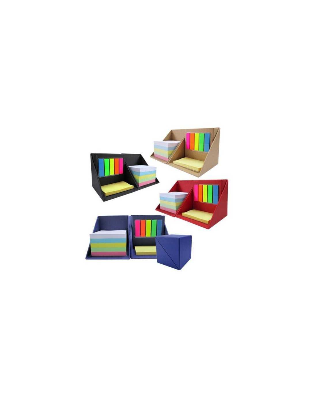 Cubo Ecologico Personalizado de 500 hojas notas 5C, 50 hojas de notas adhesivas amarillas, 25 hojas 5C banderas adhesivas. Colores: Natural, negro, rojo, azul. Medidas: 9 x 9 x 9cm, 2mm cubierta (Aprox.)