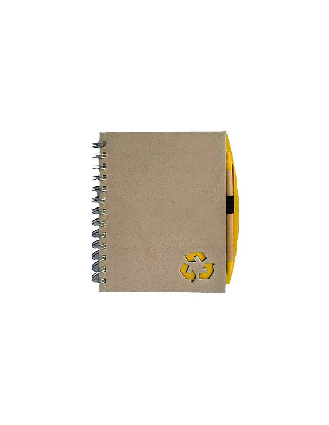 Libreta Ecologica Pequeña con 70 hojas rayadas y 1 lapicero ecológico. Agenda Ecologica Pequeña con logo Troquelado Recicable Colores: naranja,negro, verde limon,azul, rojo,amarillo. Medidas: 13.5 x 15.5