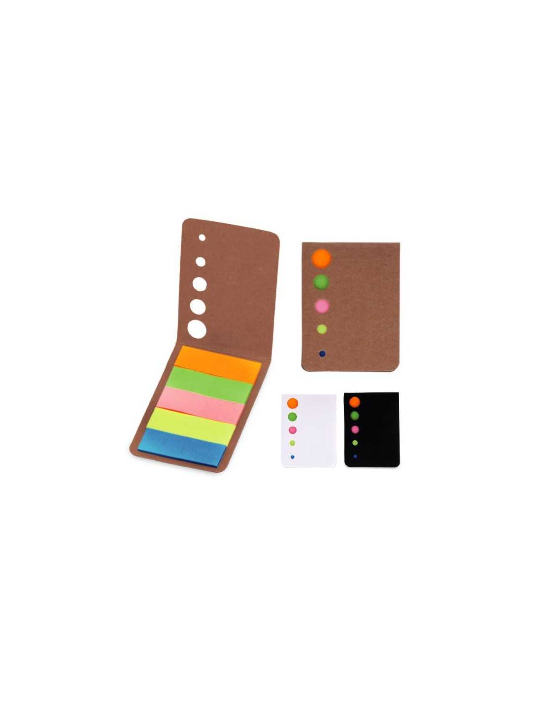 Bloc de notas adhesivas con tapa troquelada de suave tacto acabada en cartón reciclado. Con 125 mini notas adhesivas.