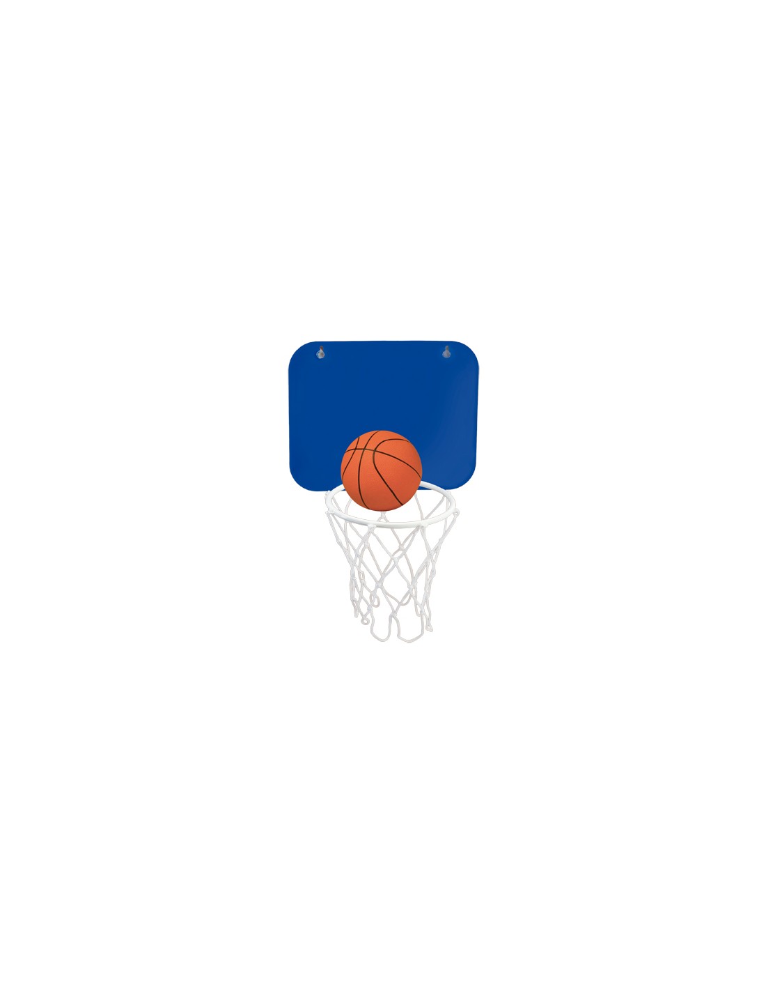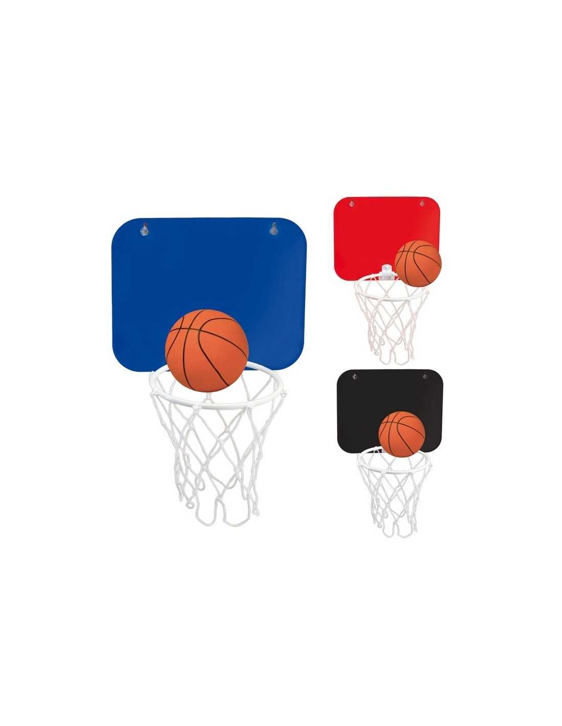 Canasta en PVC con tablero en vivos colores. Con pelota de minibasket incluida y ventosas en parte trasera para fijación.