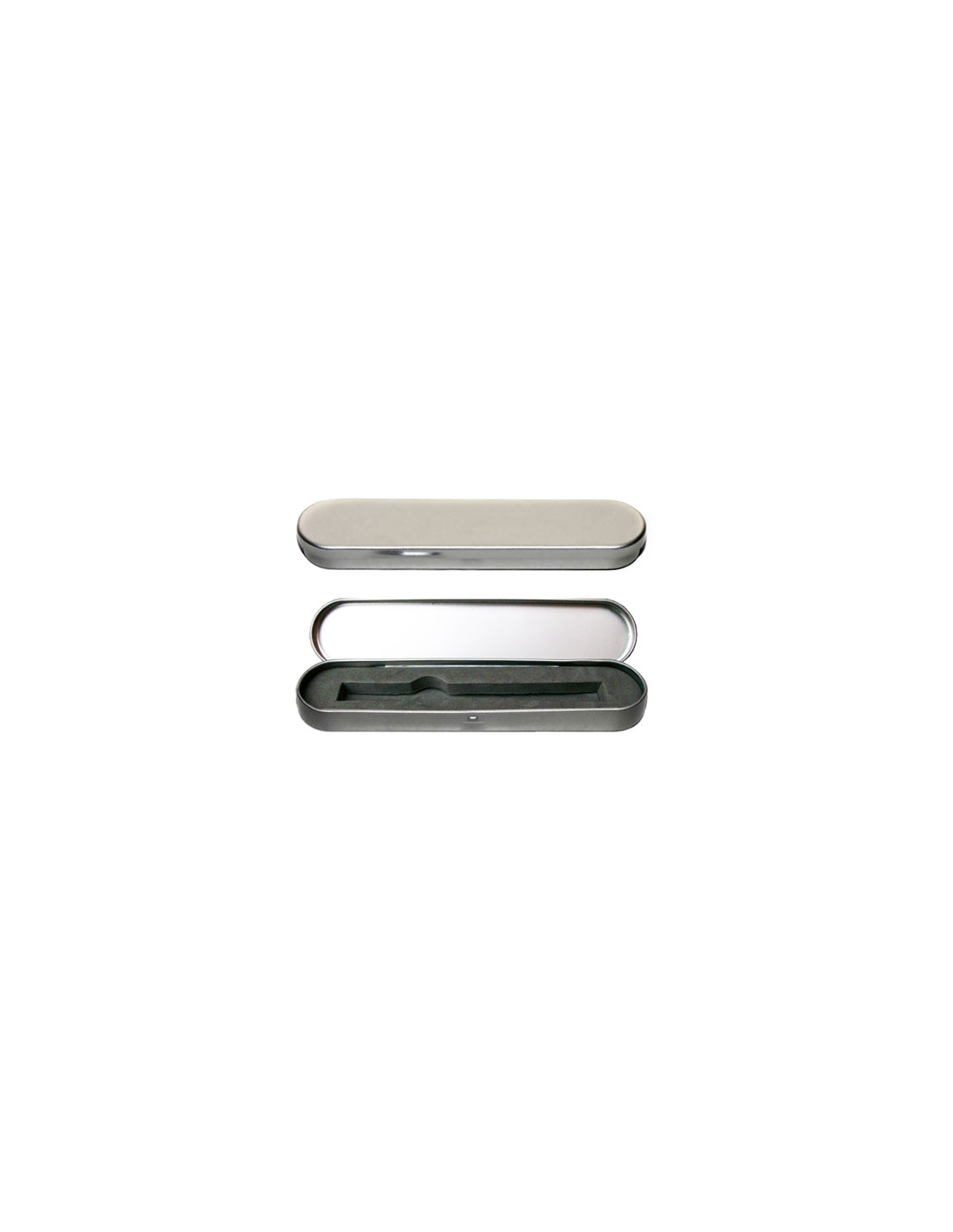 Estuche Metal Plateado Estuche de metal, color plateado, para lapicero, con eva troquelada color gris.