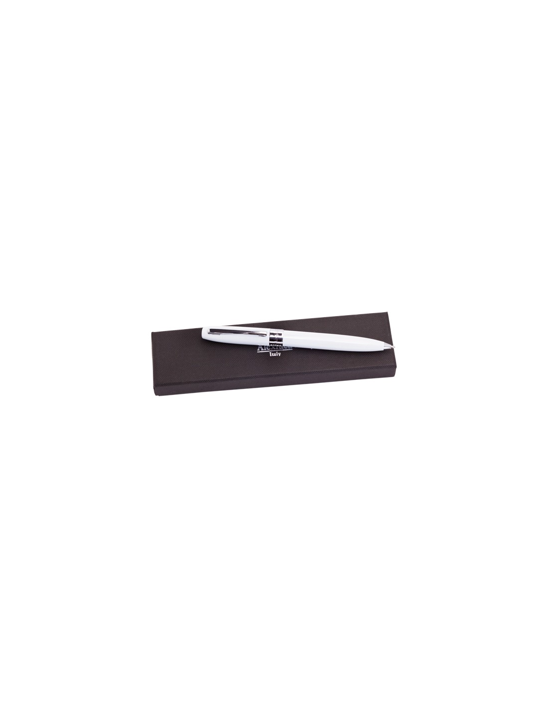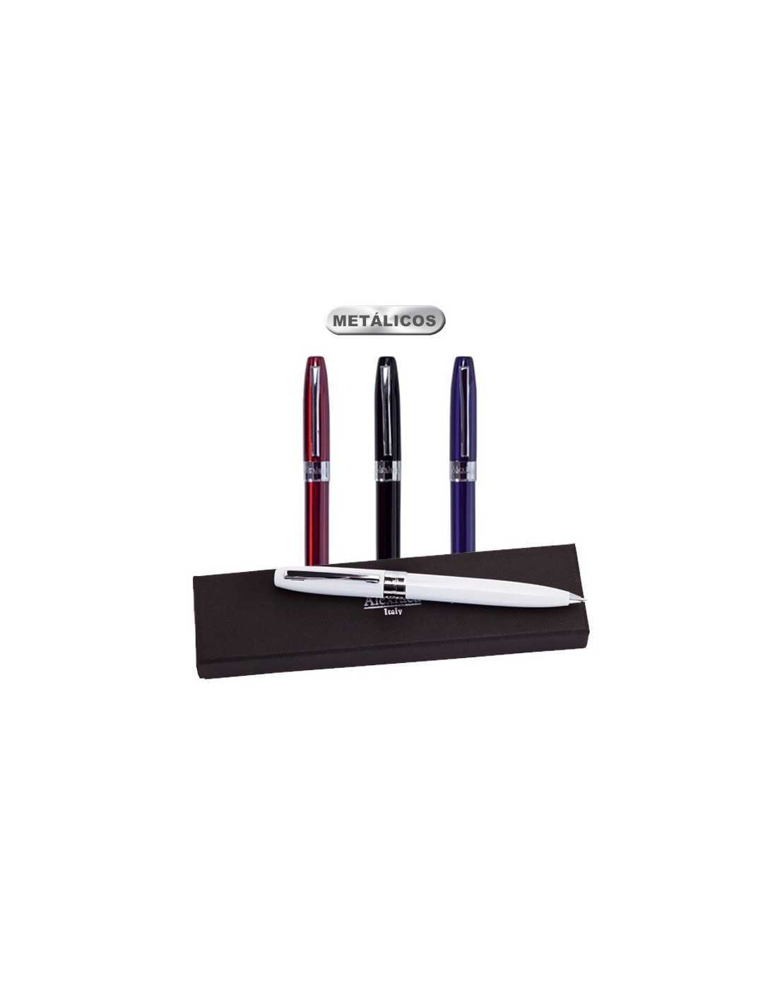 Lapiceros de Alexluca de mecanismo giratorio en elegante diseño bicolor y suave cuerpo metálico en llamativos colores. Con clip y punta en acabado plateado brillante y logotipo de la marca en la anilla central. Presentado en estuche individual negro. En tinta azul.