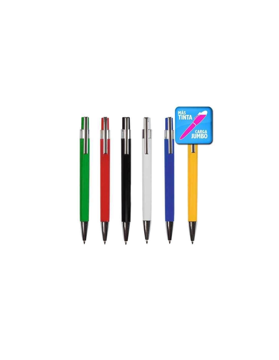 Lapiceros de Alexluca de mecanismo pulsador de elegante diseño bicolor y suave cuerpo de acabado brillante en llamativos colores sólidos. Con accesorios en acabado plateado brillante y logotipo de la marca en parte superior del pulsador. De cartucho jumbo y tinta azul.