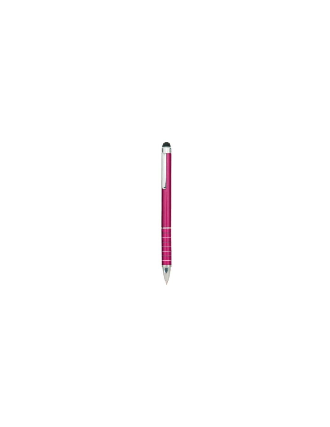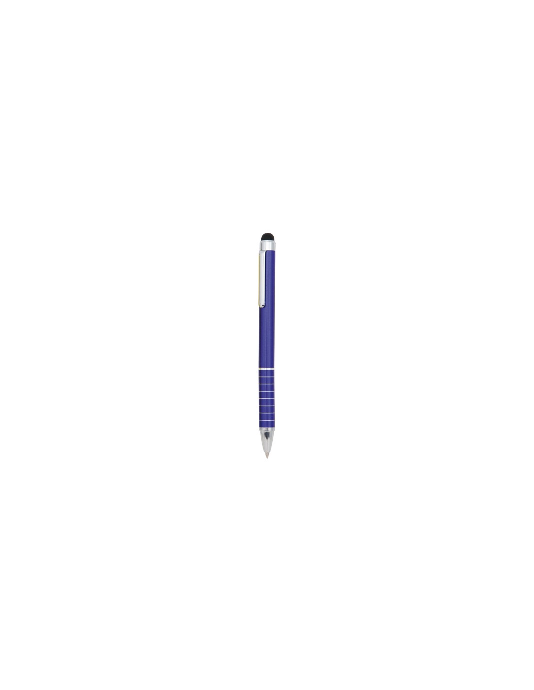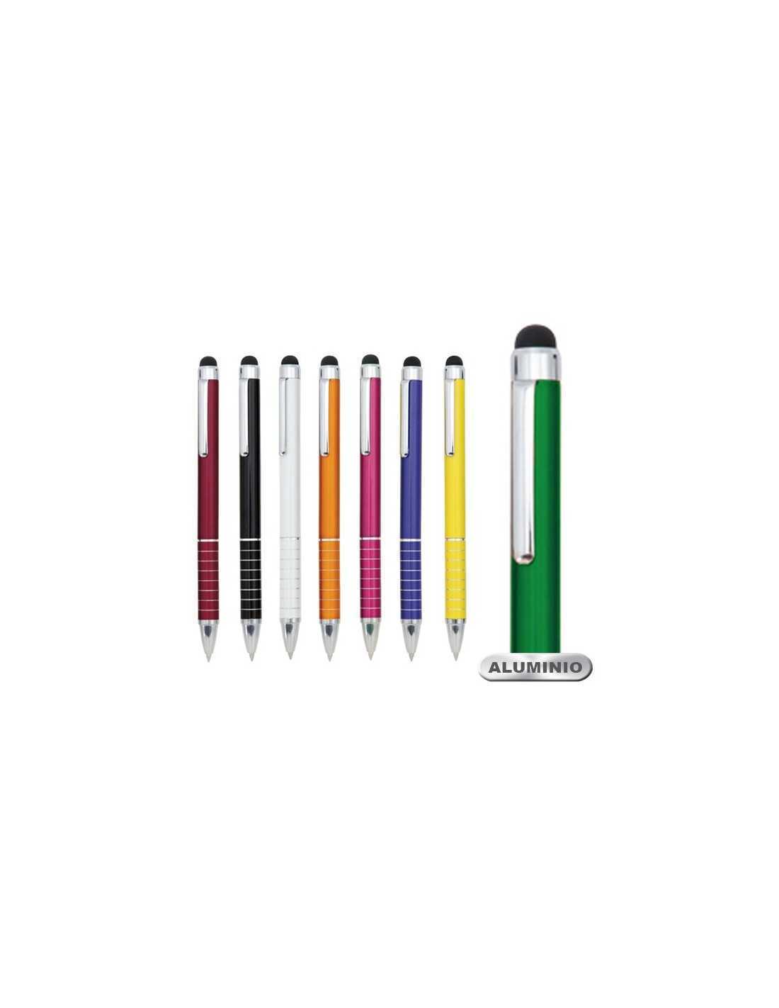 Lapiceros puntero de mecanismo giratorio con cuerpo en aluminio de suave acabado metalizado en vivos colores. Accesorios y anillas en color plateado. Original empuñadura anillada y tinta azul.