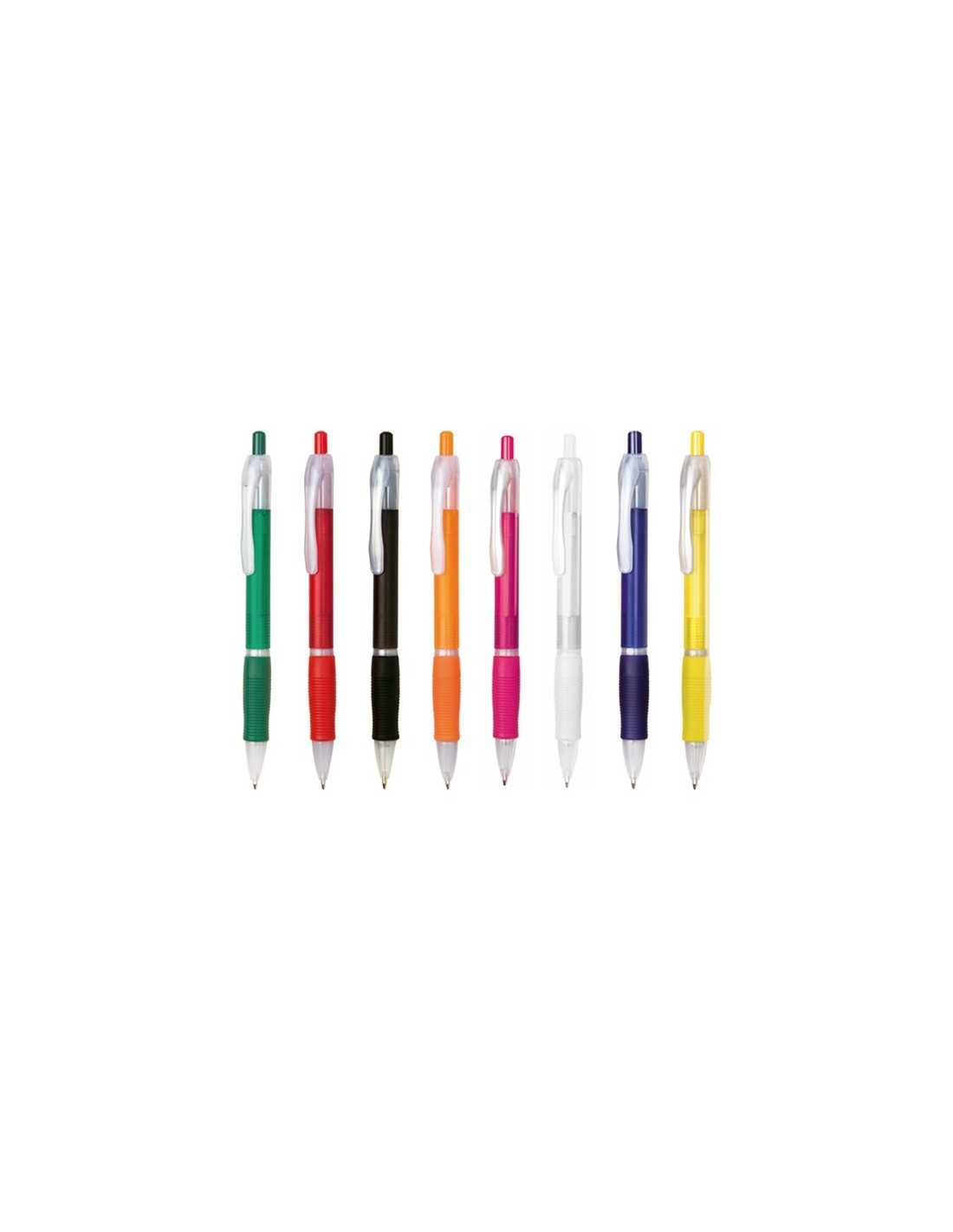 Clásico Lapiceros con mecanismo de pulsador, de atrevido diseño bicolor y cuerpo en colores frosted de suave acabado. Con cómoda empuñadura a juego. Tinta azul.