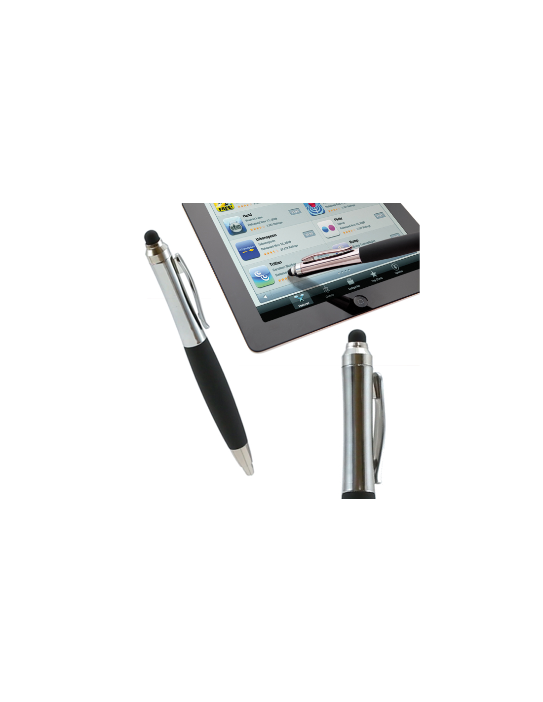 Lapiceros puntero de mecanismo giratorio de sobrio diseño bicolor con accesorios en elegante color metalizado y cuerpo de suave acabado de goma en negro. Presentado en estuche de cartón negro y de tinta azul.