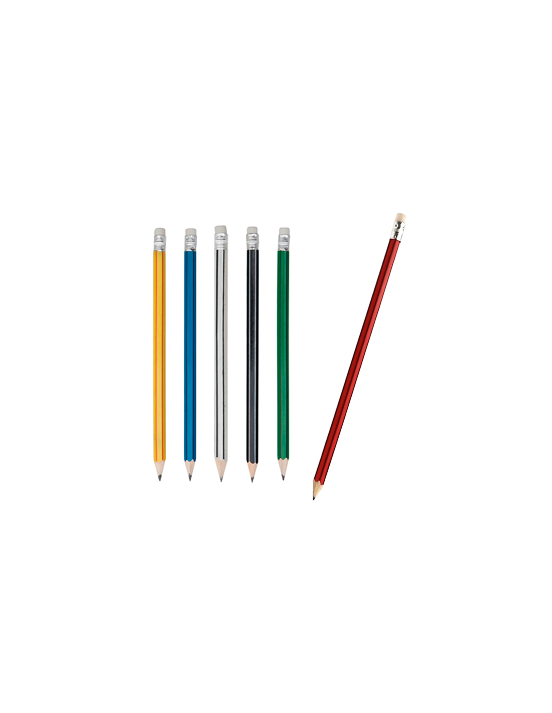 Lápiz de madera con cuerpo hexagonal de diseño bicolor en brillantes colores y con goma de borrar. Punta afilada.