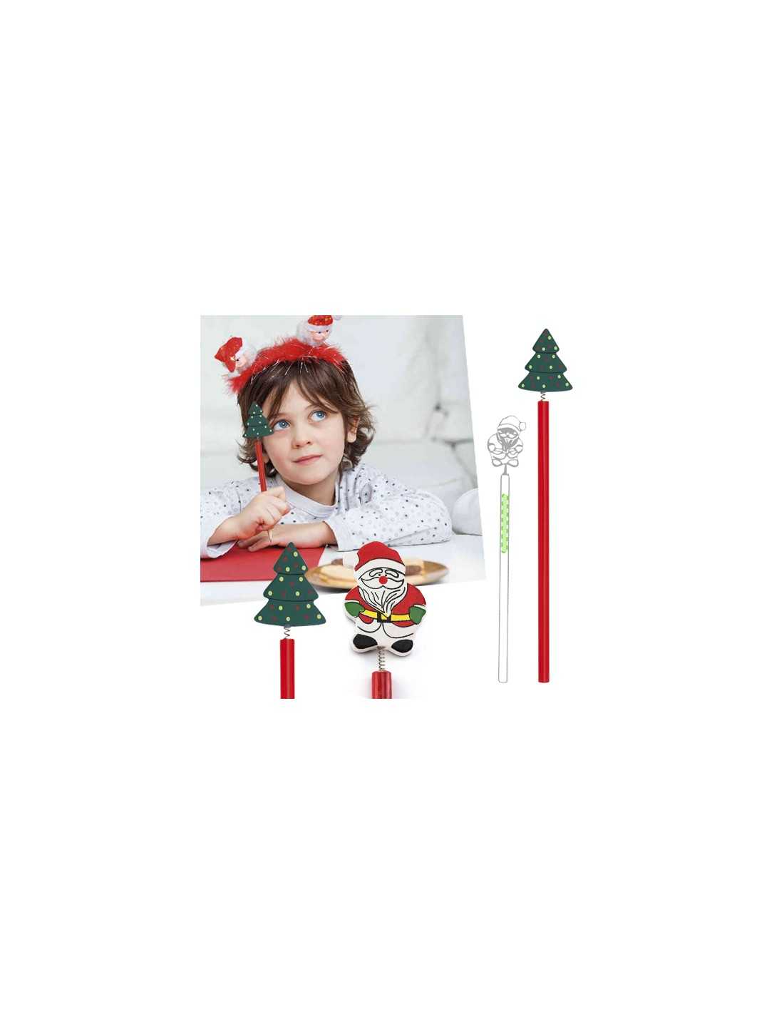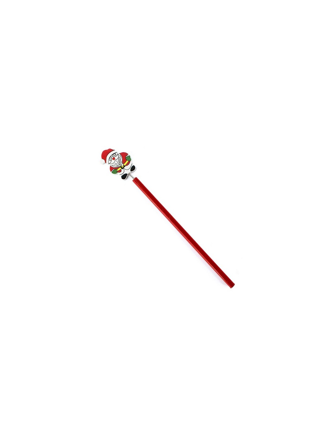 Original lápiz de madera con diseño navideño. De cuerpo cilíndrico de acabado en rojo brillante y con motivos navideños en la parte superior. Punta sin afilar.