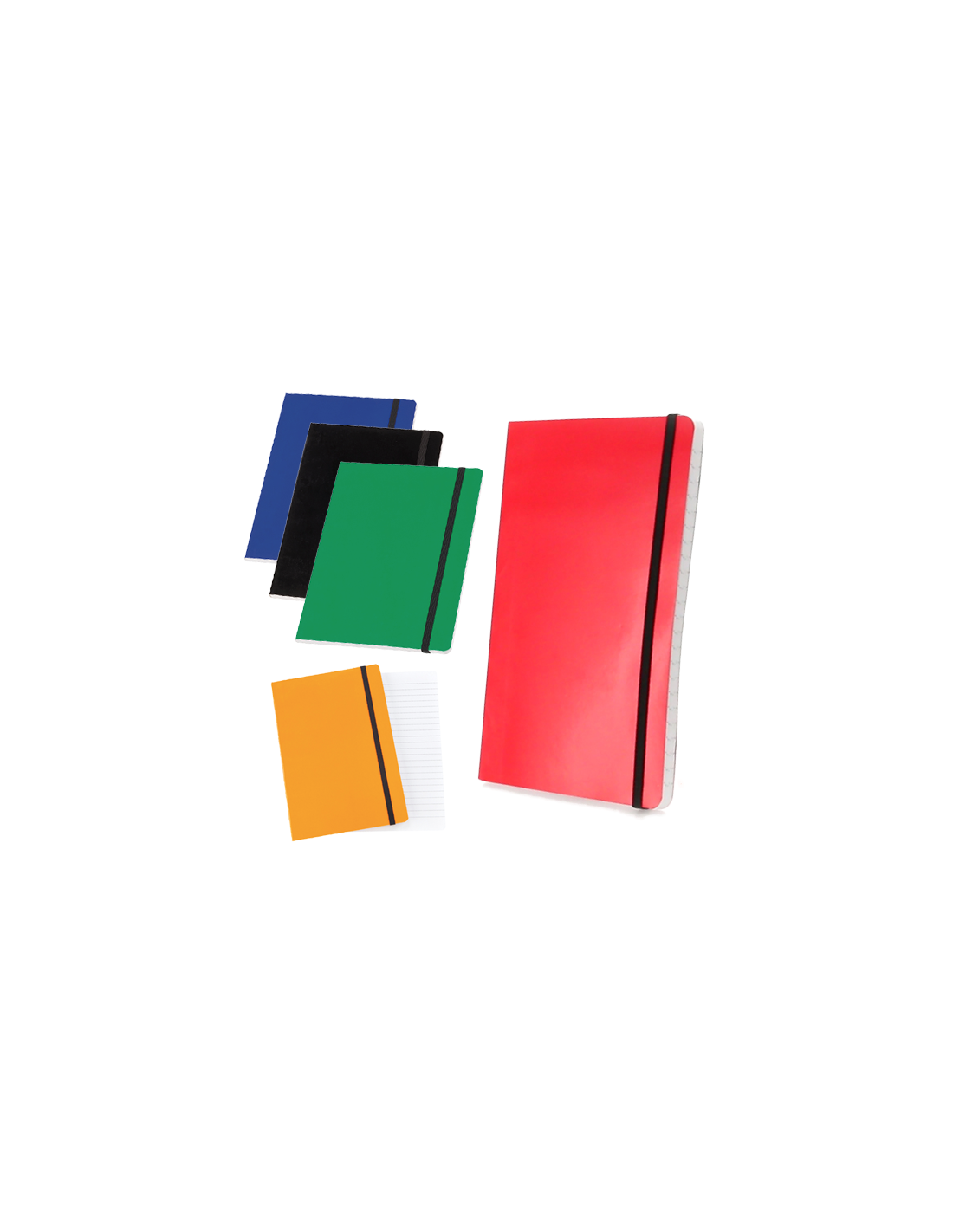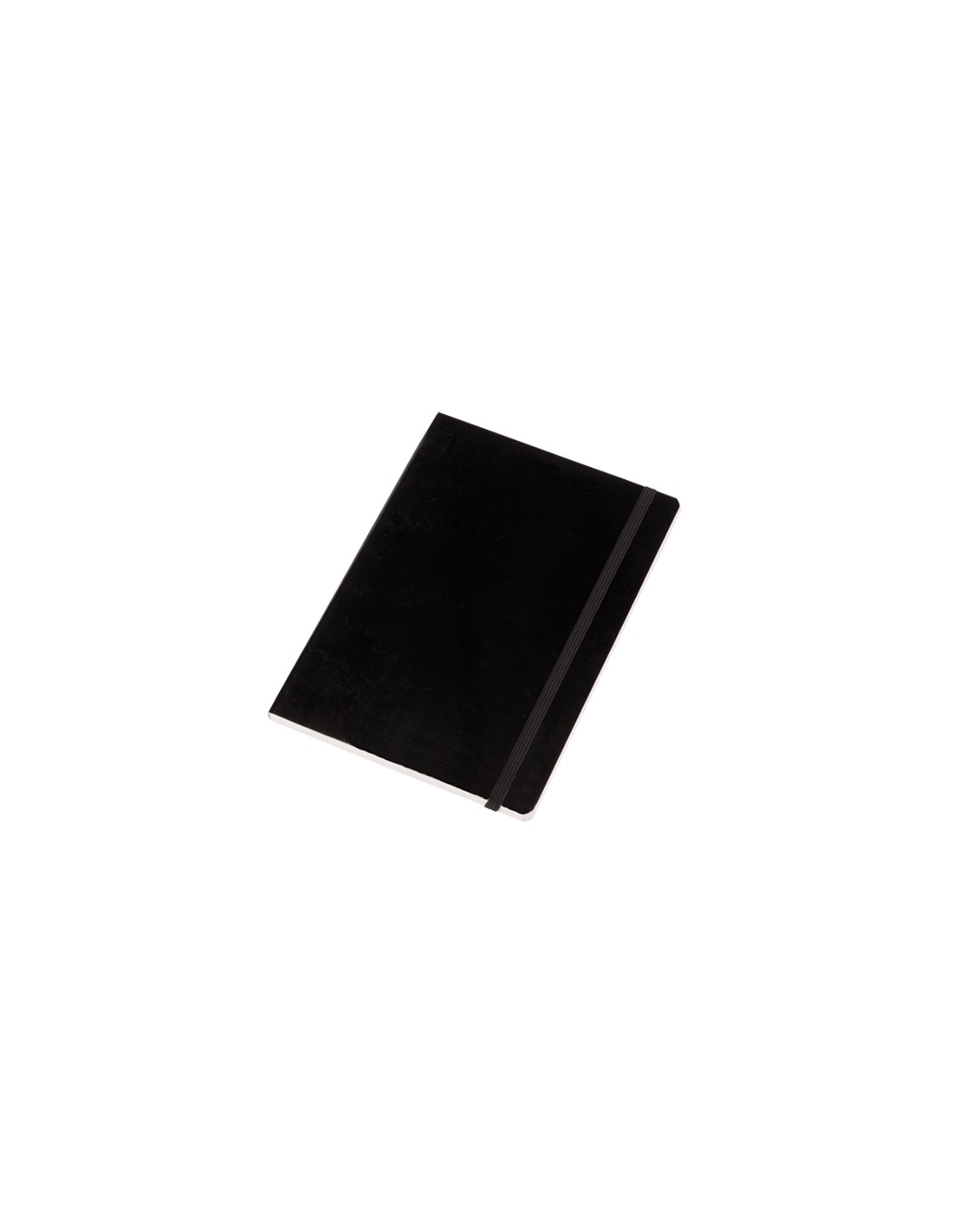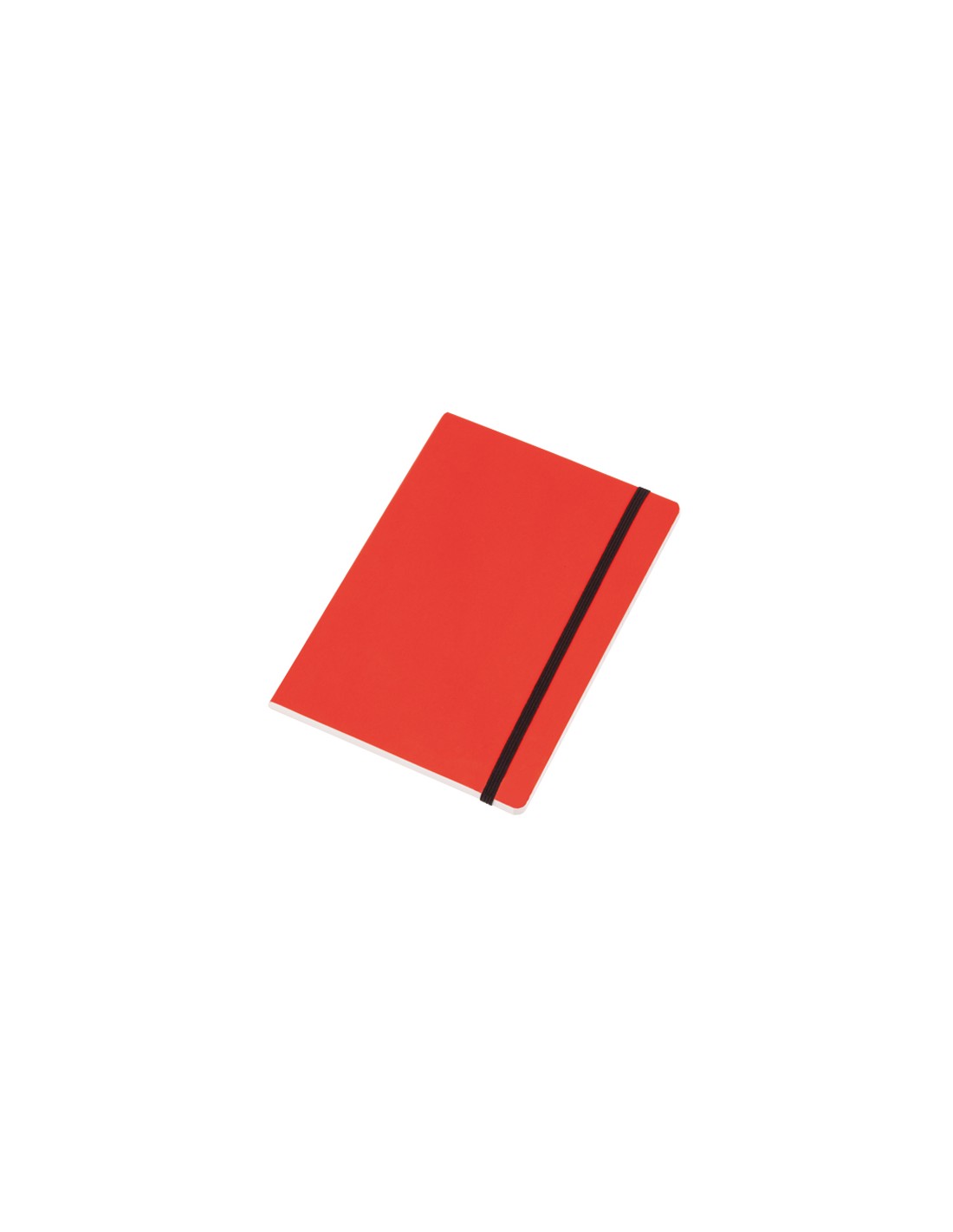 Libreta con tapas de suave tacto acabadas en cartón brillante en originales colores. De 80 hojas con distribución a una raya, con elástico de sujeción y marcapáginas de tela en elegante color negro.