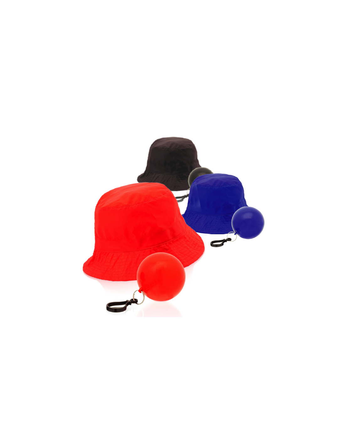 Llavero gorro de poliéster impermeable en vivos colores. Presentado en bolita llavero a juego con mosquetón de transporte.