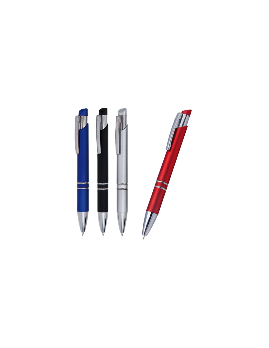 Mini Lapiceros de mecanismo pulsador de elegante diseño bicolor con accesorios en color plateado brillante y cuerpo de suave acabado en llamativos colores brillantes. Con original clip y anilla doble a juego. Tinta azul.