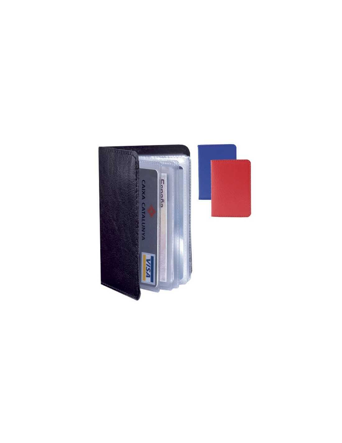 Tarjetero con cuerpo en suave acabado en polipiel de acabado brillante en llamativos colores y con 12 compartimentos interiores en resistente PVC transparente.