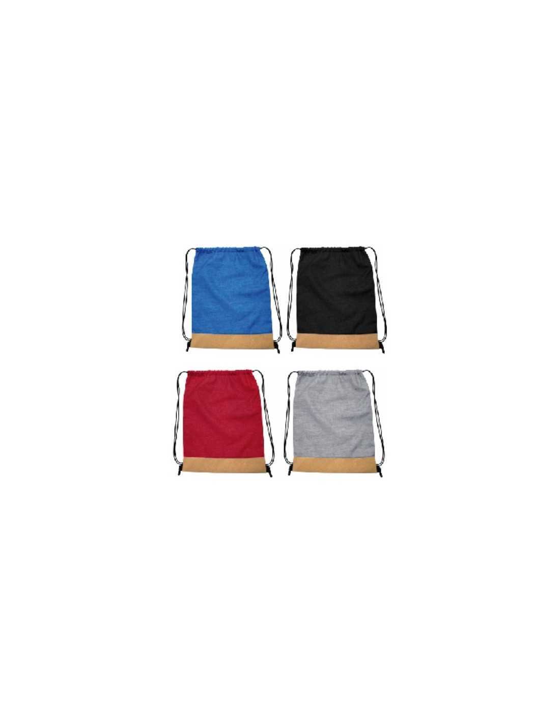 Bolso mochila corcho Poliester 300D, la parte inferior de corcho Colores: azul, rojo, negro y gris Bolso mochila corcho Publicitarias Medida: 43.5cm x 32cm.