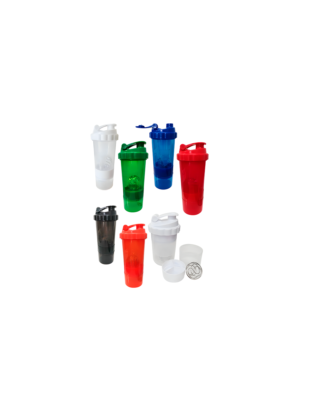 Shaker Batidor de Acero Inoxidable plastico PP con batidor de acero inoxidable, Tamaño: 24.5cm x 9.8cm, Capacidad: 500ml. Accesorios: Separador para pastillas y preparacion de batido