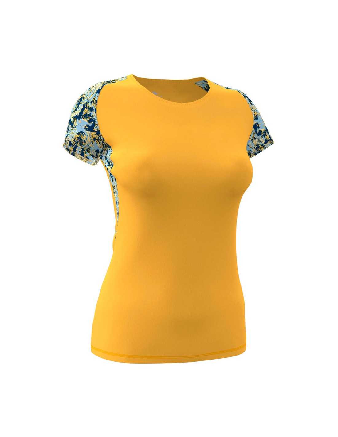 Camiseta de running en talla mujer, tejido suave y cómodo. Diseño de corte semientallado, cuello redondo