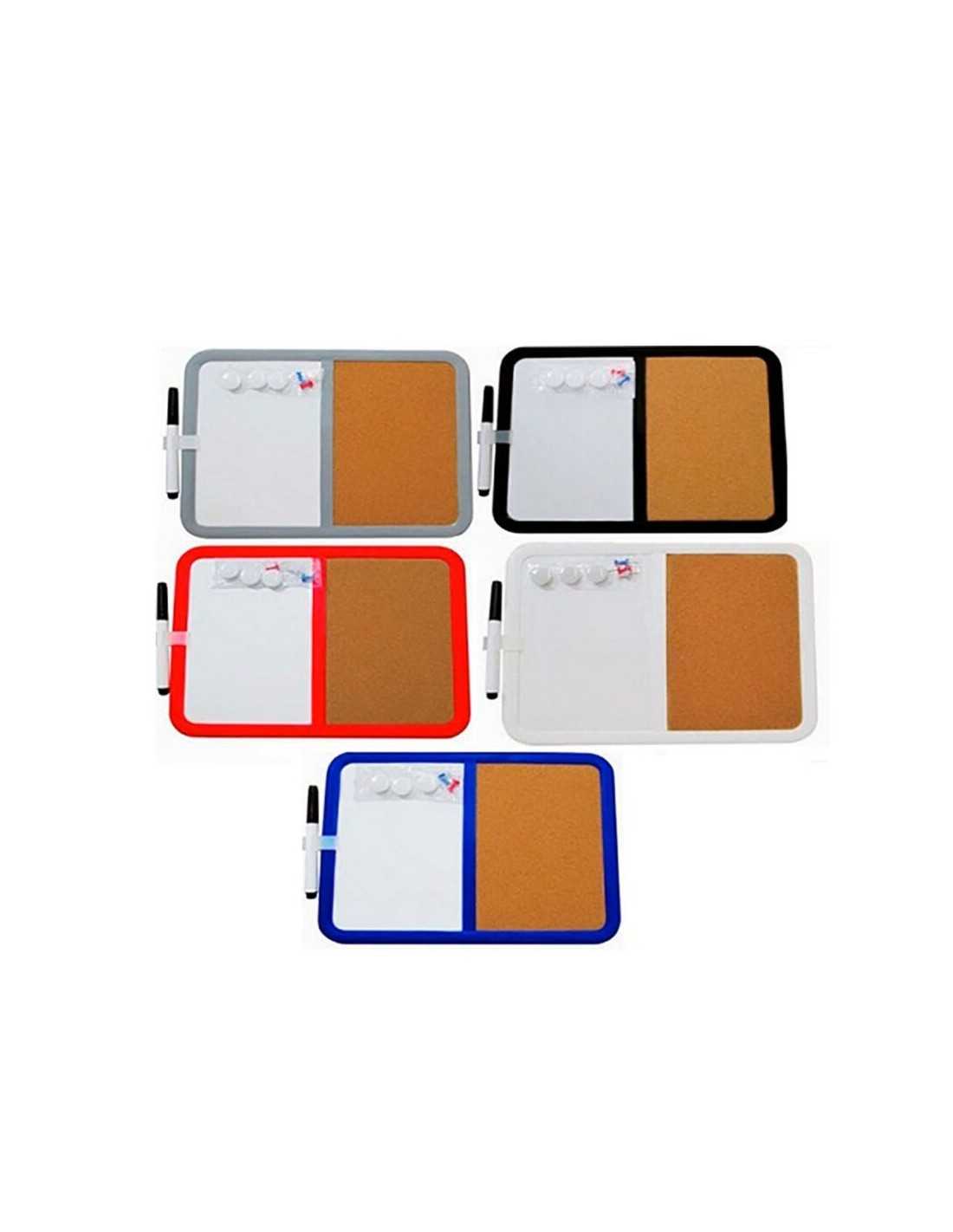 Pizarra Acrilica Corcho Pizarra acrílica y corcho, con imanes, incluye 1 plumón negro, 3 botones imantados, 3 chinches de colores y adhesivos doble contacto. Colores: Azul, rojo, negro, blanco y gris. Pizarra Acrilica Corcho Publicitar