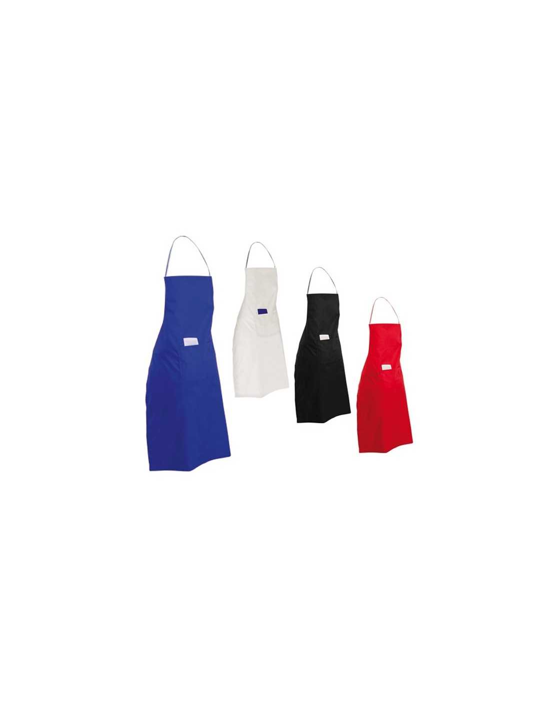 Delantal de alta calidad en material TC -combinado de algodón y poliéster-. En variada gama de vivos colores, con bolsillo doble frontal y cintas de ajuste bicolor. De corte por encima de la rodilla.