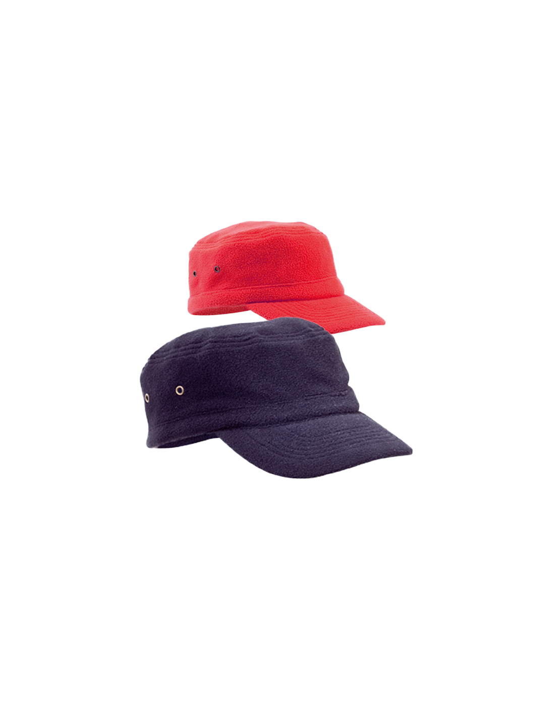 Gorra tipo militar en material polar fleece de 250g/m2 y en vivos colores. Con orificios de ventilación laterales reforzados con argolla metálicas y cierre ajustable de velcro.