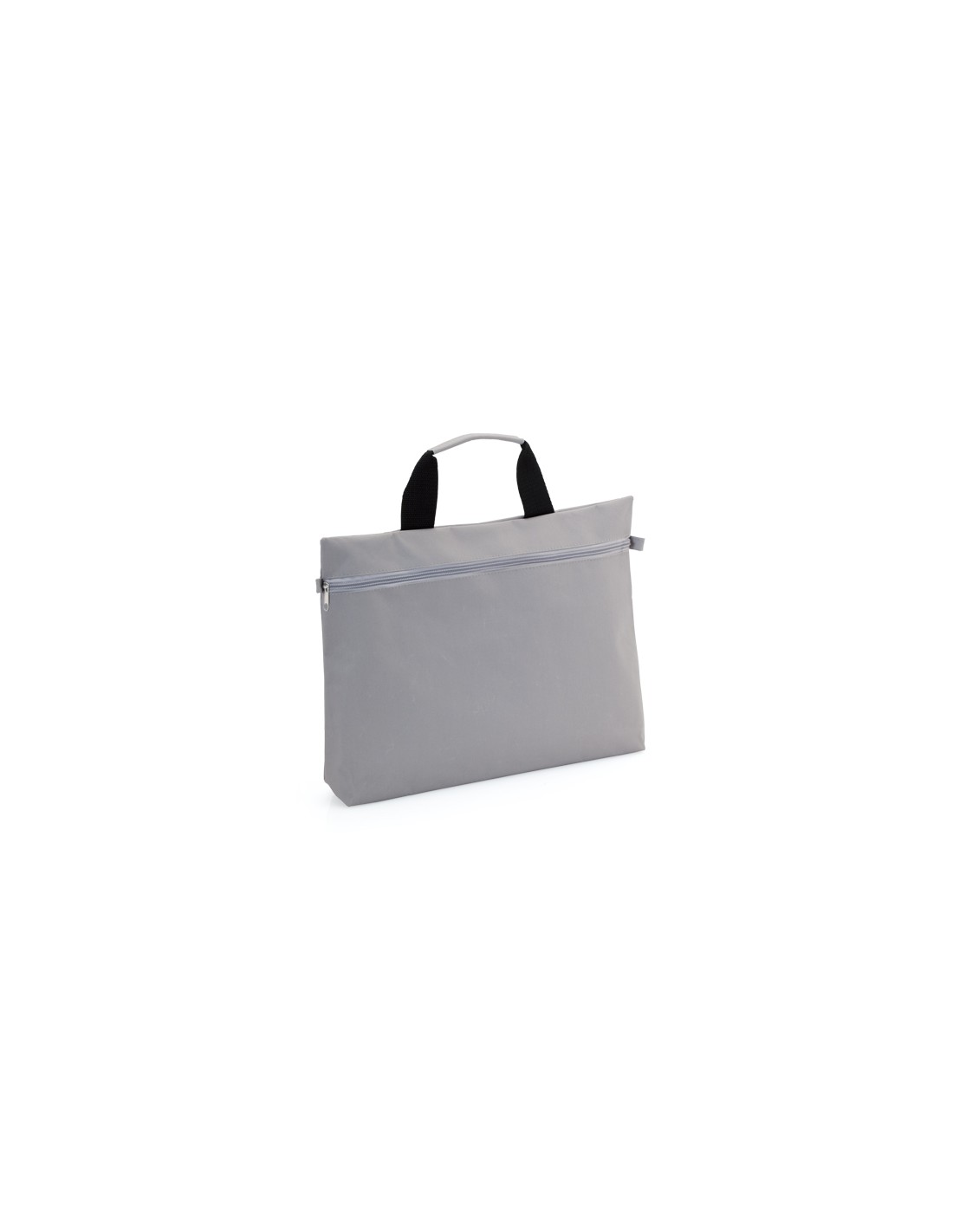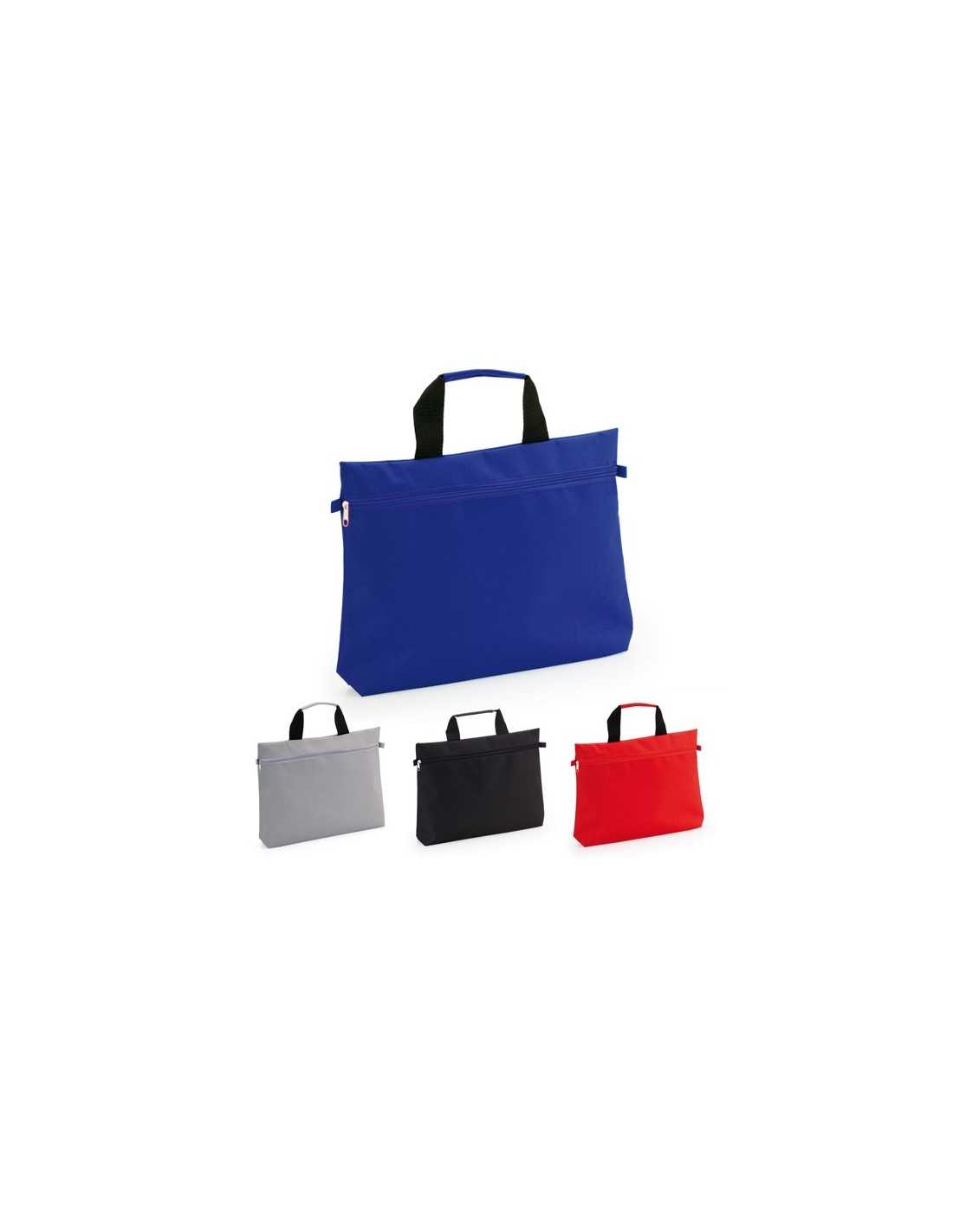 Portadocumentos de cierre de cremallera en suave acabado de poliéster 600D de vivos colores. Con asas de transporte con refuerzo a juego, cremallera y soportes laterales a juego.