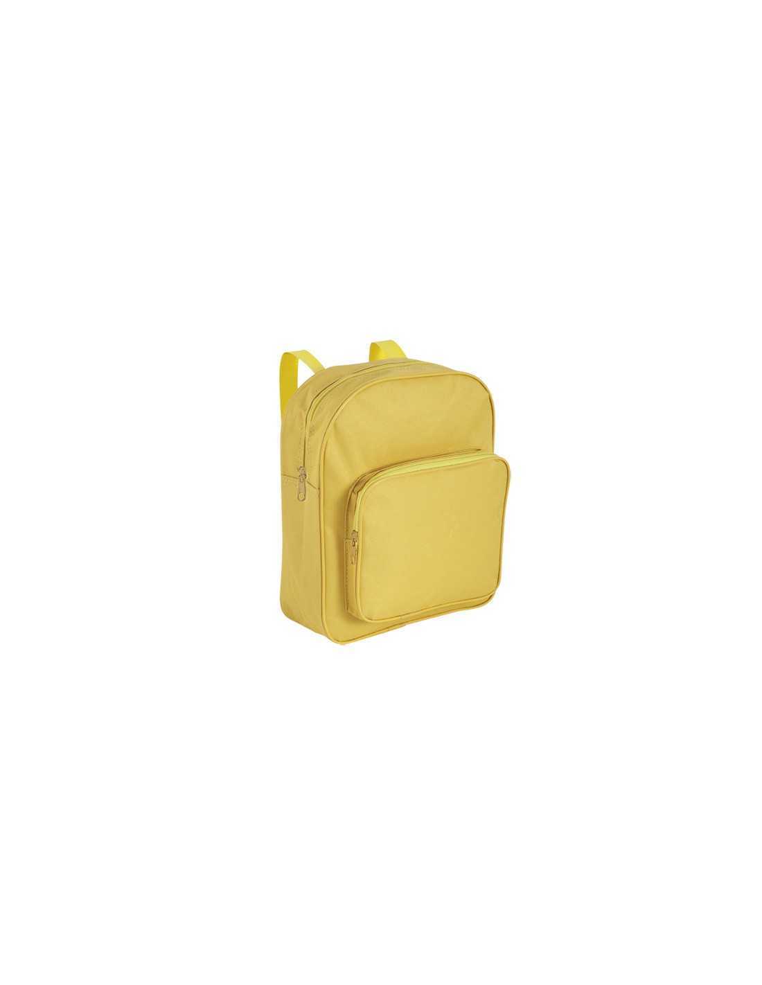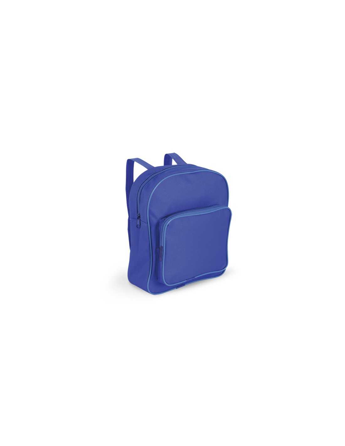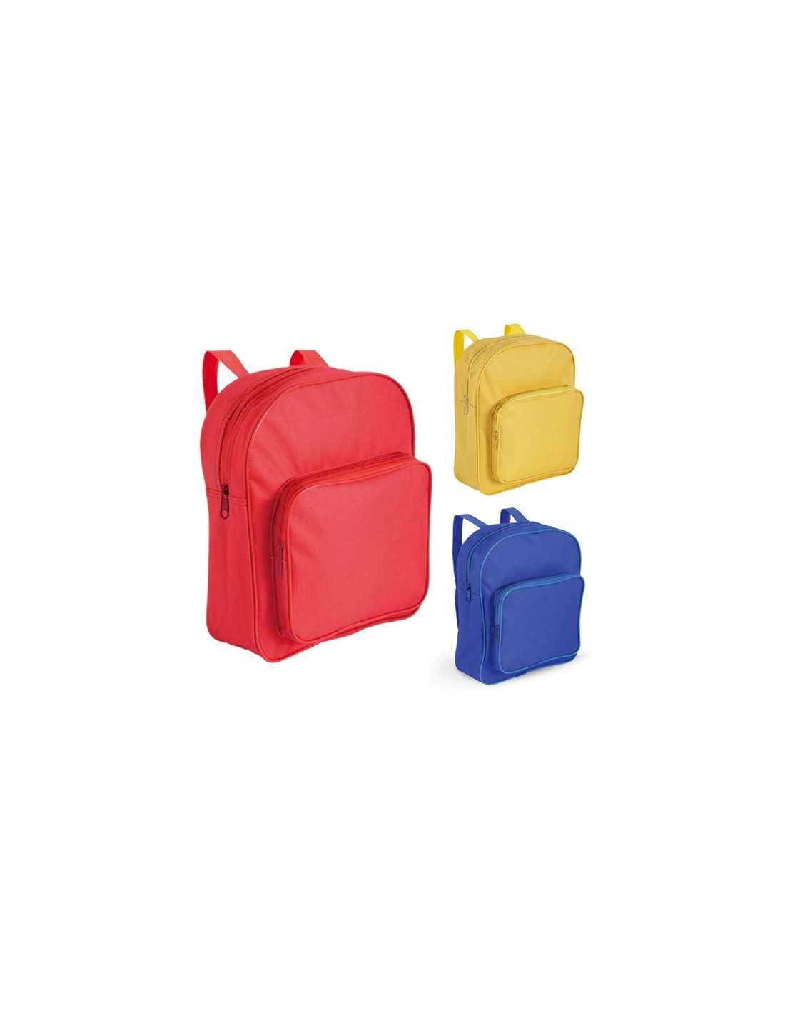 Mochila para niño en resistente poliéster 600D de desenfadado diseño en alegre gama de colores y con ribete de refuerzo a juego. Con cierre de cremallera a juego, bolsillo frontal y esquinas reforzadas. Cintas de hombros ajustables a juego.