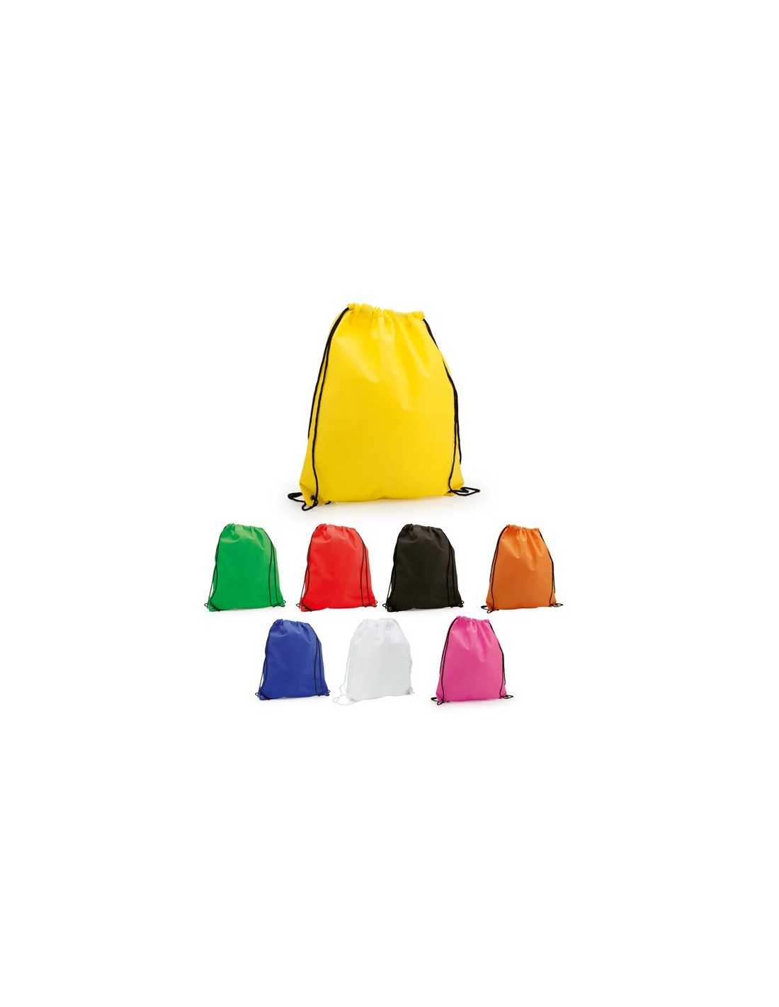 Mochila de cuerdas en suave non-woven de alegres colores y extensa gama de colores. Con cuerdas autocierre en color negro y esquinas reforzadas con argollas metálicas.