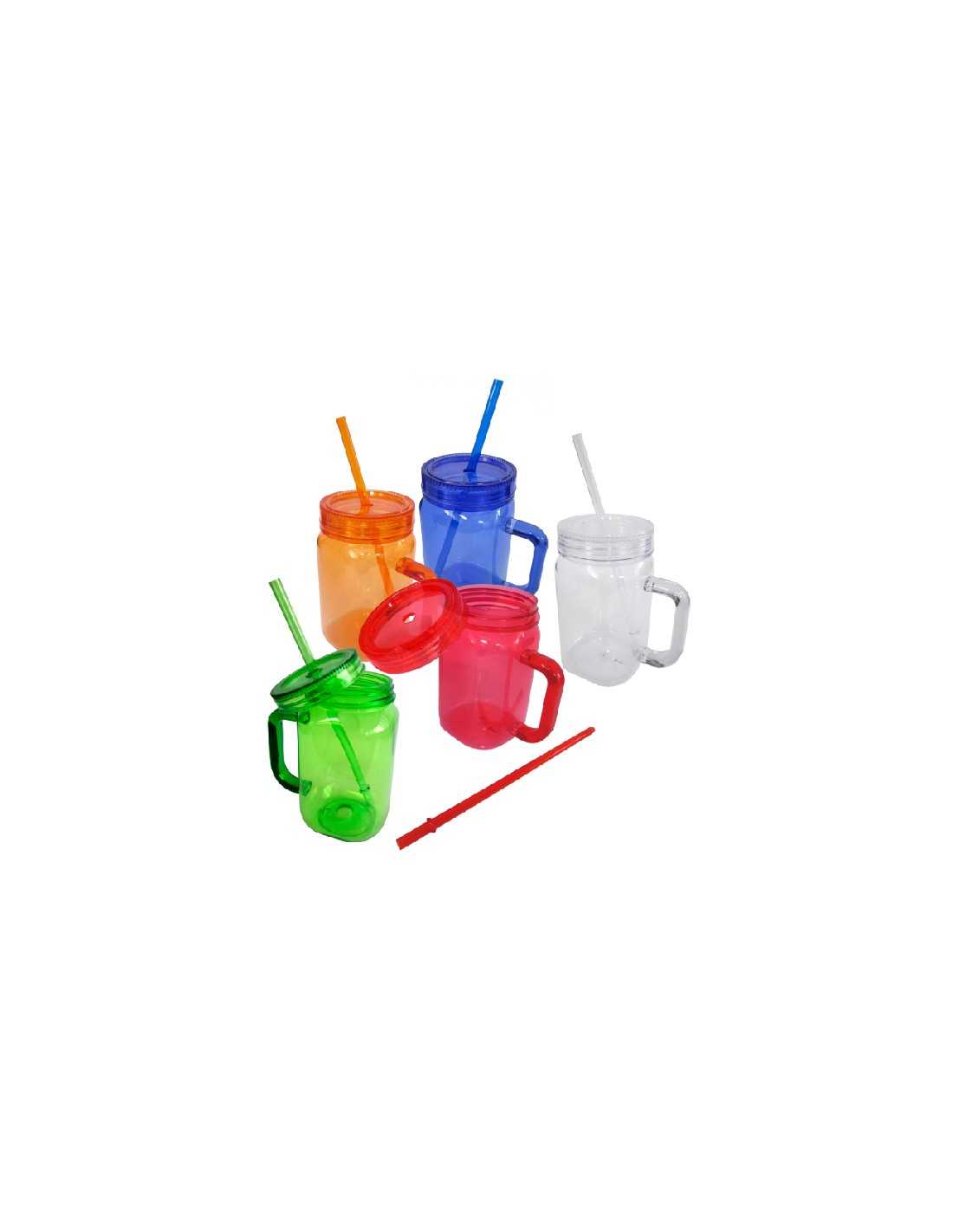 Mug de Plastico Traslucido de un solo color. Jarro Plastico Mason incluye sorbete.