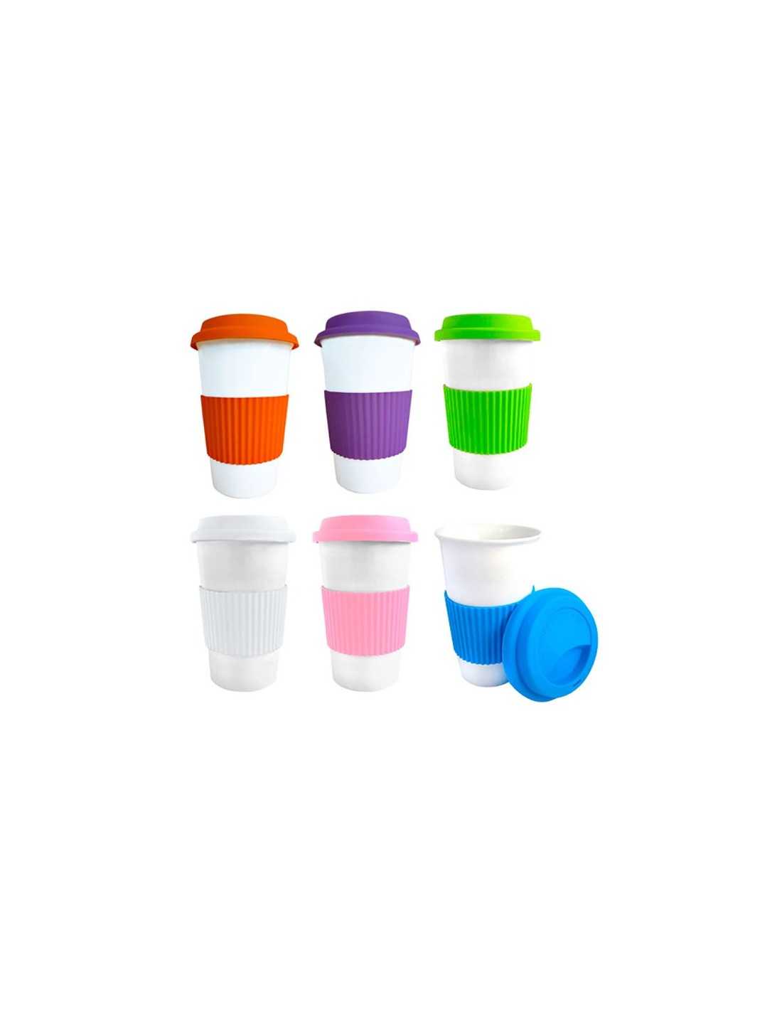Mug Ceramico con accesorios de silicona para llevar liquidos de altas temperaturas sin sufrir quemaduras. Jarro Mug Colores de silicona disponibles: azul, rojo, verde, blanco, negro, naranja, rosado, verde limón, gris. Mug Ceramico Personalizado con logo en serigrafia