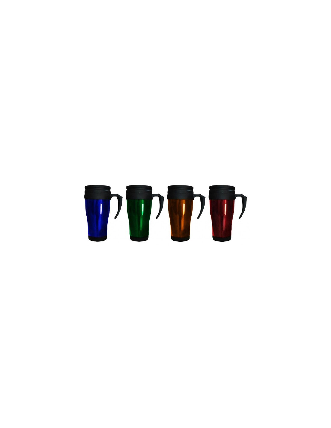 Jarro totalmente plastico, por fuera cuerpo de colores traslucidos, el borde del jarro, el mango (asa) y la base son de plastico color negro. Mug Plastico Economico para eventos publicitario de 450ml.